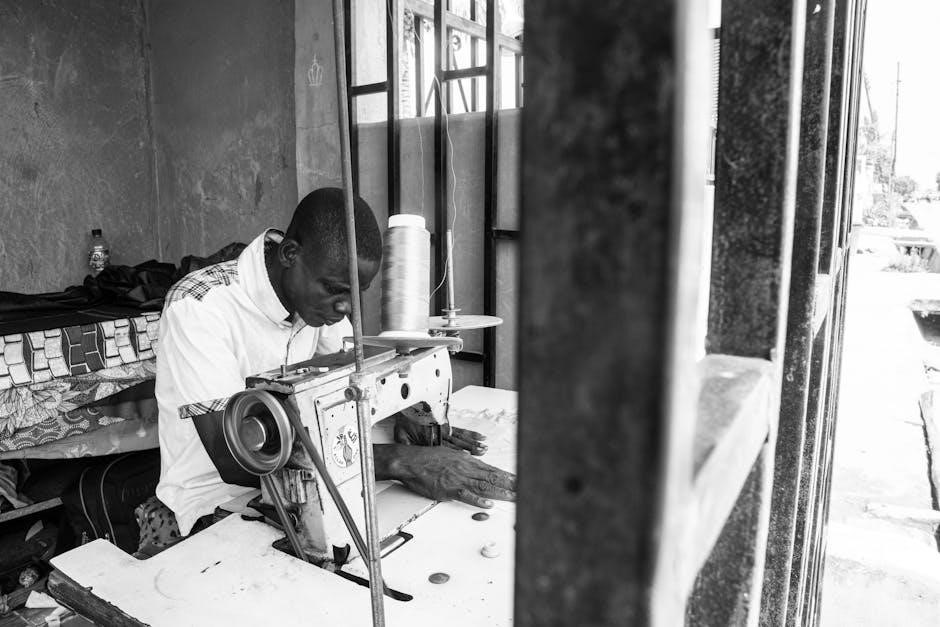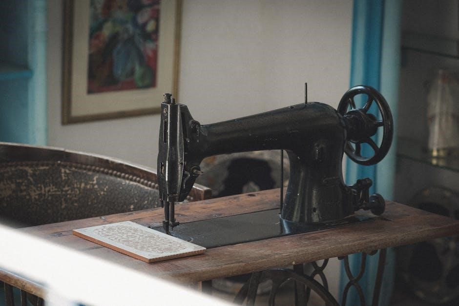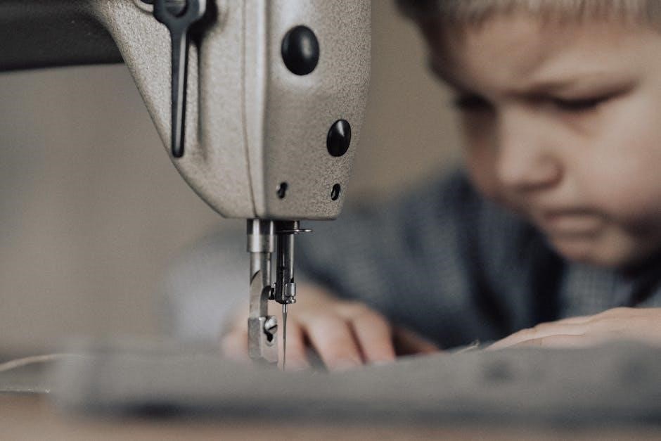 For uneven stitching, check presser foot pressure and fabric feed. A jammed machine usually requires removing the bobbin case and clearing any tangled threads. Always disconnect the power before attempting any internal repairs. Refer to the manual for detailed diagrams and solutions. If issues persist, seek professional assistance to avoid further damage; Regular maintenance minimizes these common problems.